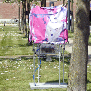 Die innere Konstruktion des Würfels besteht aus 4 Armen mit jeweils 3 Freiheitsgraden (Gelenke). An jedem Arm ist sowohl eine untere und eine obere Ecke des textilem Würfels befestigt. Die pneumatisch angetriebenen Arme können nun den Würfel in andere Formen verwandeln oder ihn auf- und abtanzen lassen. Die Bewegungen werden von unter dem Würfel angebrachten Sensoren ausgelöst. Die Energie für die Bewegungen erhält der Würfel von einem Kompressor, der außerhalb des Würfels in einer Versorgungskiste untergebracht ist. Der Würfel selbst ist mit einem Druckschlauch und einem Niedervoltkabel mit der Versorgungskiste verbunden. Die Druckluft versorgt die Druckluftzylinder, welche den Würfel bewegen. Das Stromkabel versorgt die Steuerung, die Sensoren und die elektrischen Ventile.
