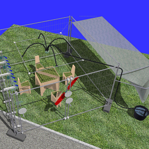 Die menschlichen Erleber sollen dennoch den natürlichen Prozess mitgestalten, allerdings nur in einer passiven Art und Weise. Dazu gibt es einen Regenwasserauffang mit Regenwasserauffangbehälter (abgespannte Kunststoffplane und Speisbottich), einer Wasserhandpumpe und Schläuche mit Gieskannentüllen an ihren Enden. Betätigt ein Erleber die Handpumpe, so wird bei vorhandenem Regenwasser das Innere des Raumes gegossen. Außerdem gibt es einen Propeller der am Bauzaun befestigt, von außen mit einer Handkurbel Wind erzeugen kann. Eine weitere Handkurbel treibt eine Reihe von Akkutaschenlampen an, die die Pflanzen mit Licht versorgen (symbolisch).