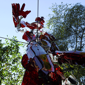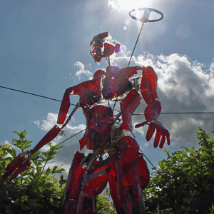 Wird der Mechanismus aktiviert und erreicht seine Extremform, laufen die Kraftlinien ins Unendliche. Wie bei einer Explosion scheint alles nach außen zu strömen. So wird die Skulptur zu einem Symbol der Verwandlung in neue Dimensionen, die völlig Neues eröffnen. Der Erleber kann Vielfältiges assoziieren, dies ist aber nicht das Wesentliche, sondern das etwas Neuartiges passiert. Ausgelöst durch den Erleber, tritt dieser unweigerlich in Kontakt mit der Figur und wird Teil des Ereignisses. Nach dem Durchlaufen unterschiedlicher Bewegungsmuster sammelt sich die Energie wieder zum introvertierten Zustand, um bei erneuter Erregung neuen Raum zu gestalten. Der Zyklus des Seins und Werdens wird immer wieder neu durchschritten.