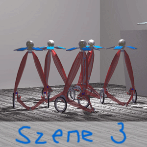 Ihre künstliche Konstruktion und Umgebung steht dabei im Kontrast zu ihrer androiden Erscheinung und natürlich wirkendem Mit- und Gegeneinander. Eine künstliche Installation, die natürliches Verhalten nachbildet. Wie auch wir und das Leben überhaupt sein Verhalten nach begrenzten Ressourcen ausrichtet.